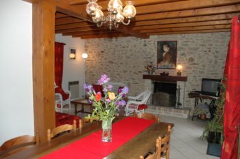 ( bois fourni ), une table pour 14 personnes et 12 chaises, 1 table basse,